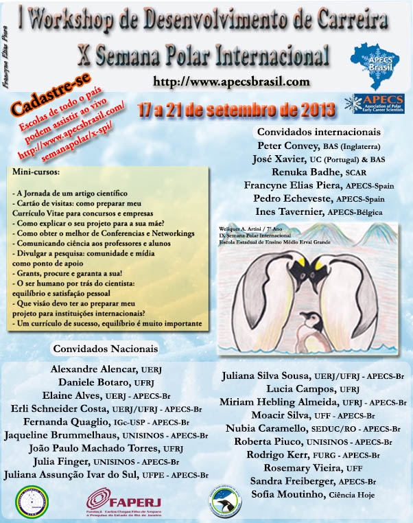 Horários dos minicursos do I Workshop de Aperfeiçoamento de Carreira da APECS-Brasil, entre 17 e 21 de setembro de 2013, atualizados! Agora ficou mais fácil escolher e fazer as inscrições. Acesse clicando aqui se inscreva, divulgue entre seus colegas e amigos!